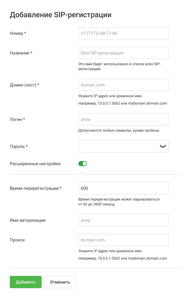 Шаг 2. Настройка SIP-регистрации в calltracking.ru