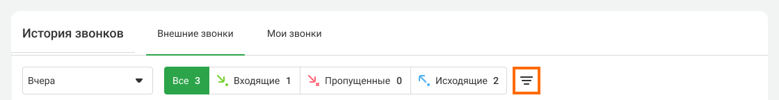 Нажмите на кнопку «Фильтры», чтобы открыть панель фильтров. С ее помощью можно отфильтровать звонки не только по клиентам и сотрудникам, но и: