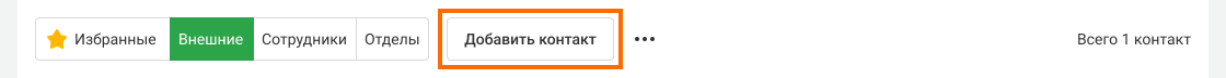 В списке контактов нажмите на кнопку «Добавить контакт».