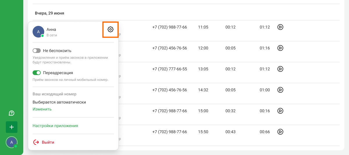 Настройки для работы со звонками