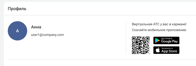Кроме того, в этом блоке указаны ваш внутренний номер в АТС, должность и уровень прав в системе.